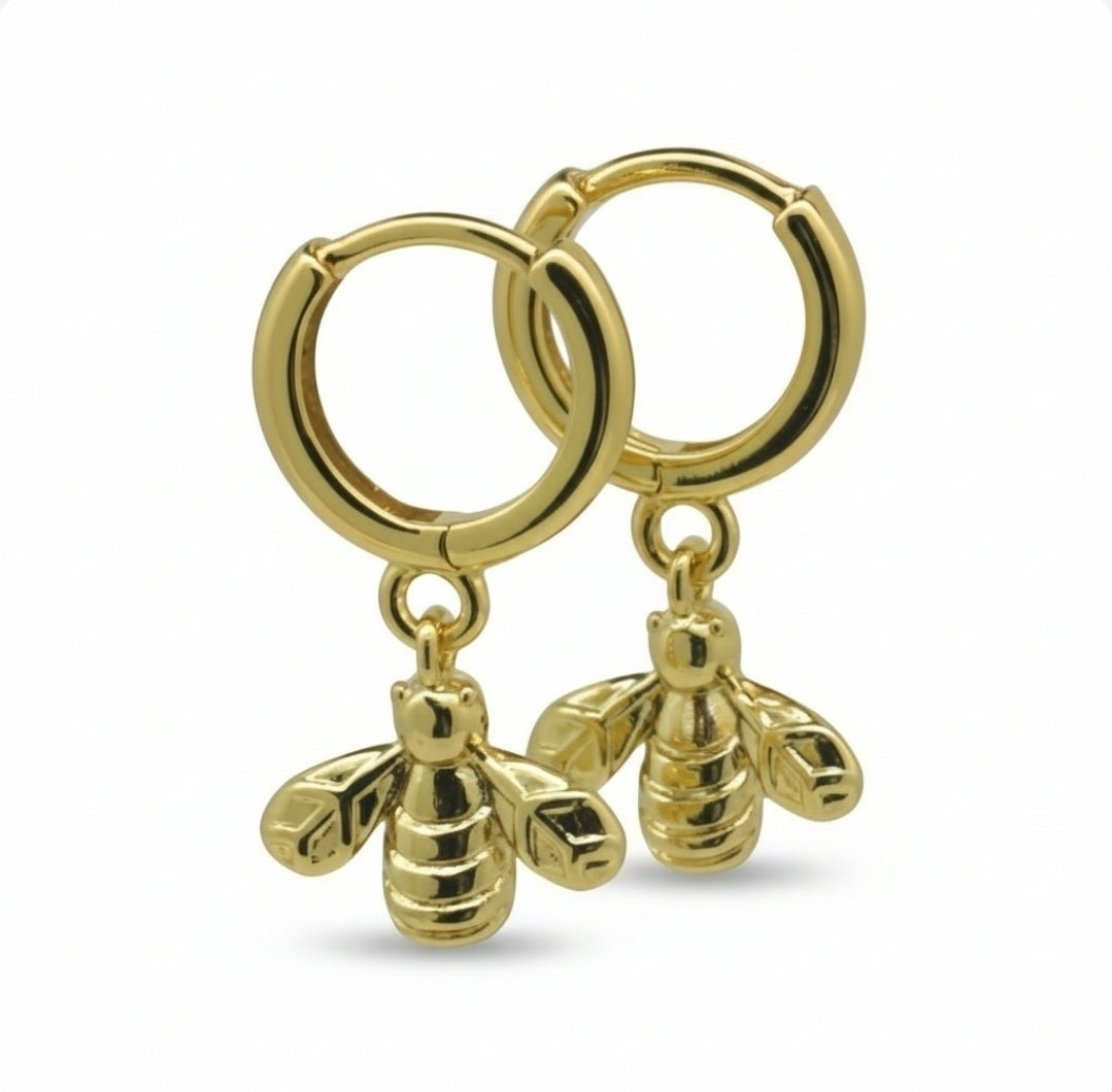 These charming gold-plated huggies feature a tiny, exquisitely detailed bee charm that dangles playfully. The bee is an ancient symbol of hard work, community, and productivity—perfect for the one who's always moving and making things happen.